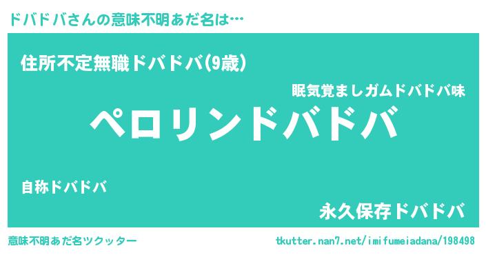 | ヒーロー風カッコイイあだ名 | 『スーパードバドバ』『仮面ドバダー』 |