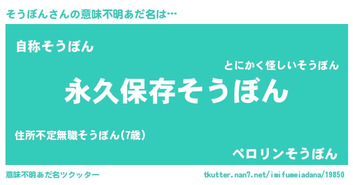 | 胡散臭い通販商品みたいなあだ名 | 『絶対に幸福をもたらす健康食品…その名も「そうぼん」』 |
