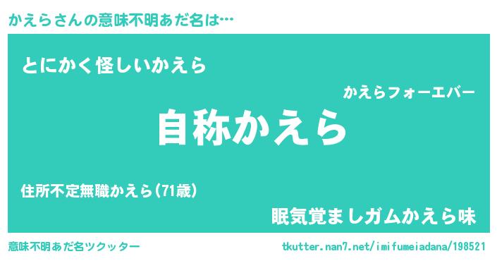 | ヒーロー風カッコイイあだ名 | 『ウルトラ戦士カエラ』『銀牙騎士カエ』 |