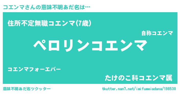 | 料理風あだ名 | 『節約★コエンマと油揚げの玉子丼』 |