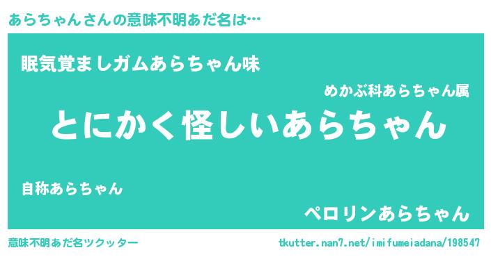 | ヘコむあだ名 | 『あらぷりん』『あらもー』『牛乳』 |