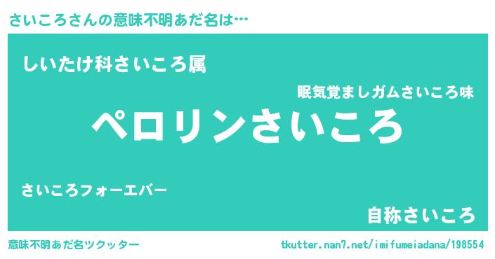 | 女子向けラノベタイトル風あだ名 | 『(仮)さいころのやんごとなき事情』 |