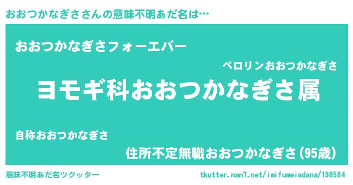 | 男性向けラノベタイトル風あだ名 | 『おおつかなぎさ~年齢イコール彼女いない歴の魔法使い~』 |