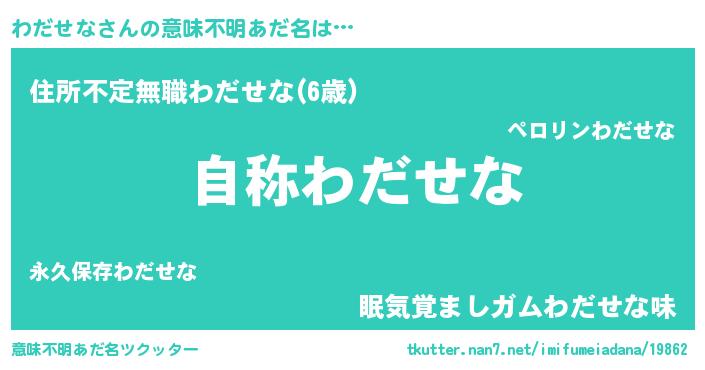 | 女子向けラノベタイトル風あだ名 | 『わだせななんてお断りですっ。』 |