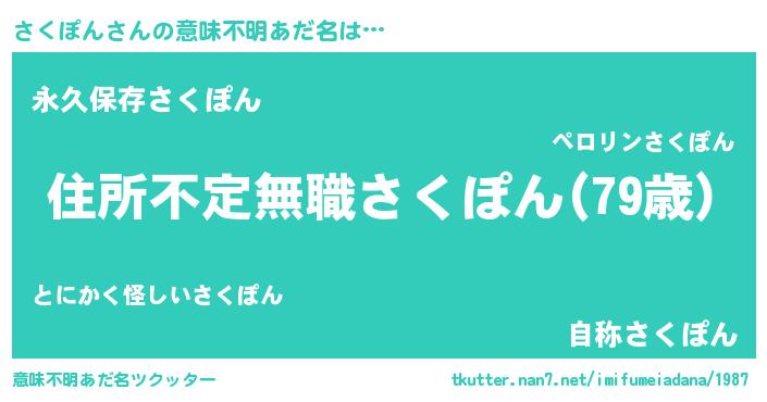 | ヘコむあだ名 | 『さくぽん(震え声)』『さくにゅー』 |