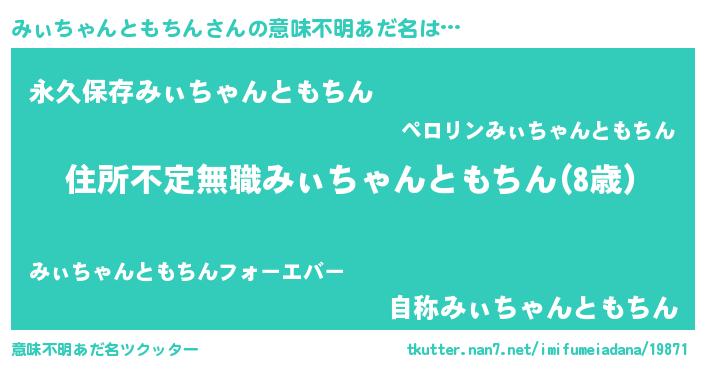 | 男性向けラノベタイトル風あだ名 | 『この素晴らしい世界にみぃちゃんともちんを!』 |