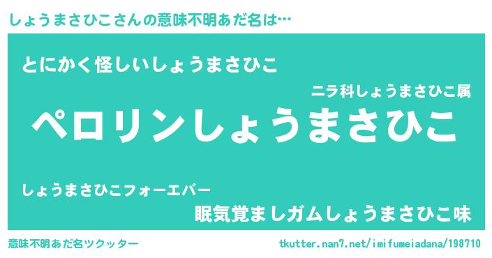 | 男性向けラノベタイトル風あだ名 | 『しょうまさひこの憂鬱』 |