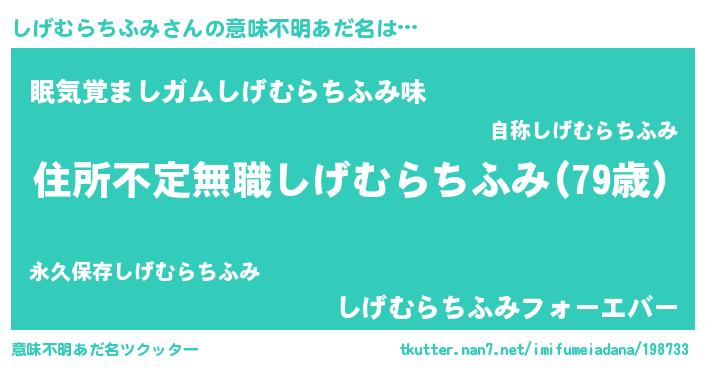 | 男性向けラノベタイトル風あだ名 | 『魔弾の王としげむらちふみ』 |
