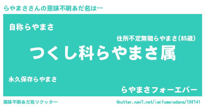 | 男性向けラノベタイトル風あだ名 | 『うちのらやまさが世界を掌握している!』 |