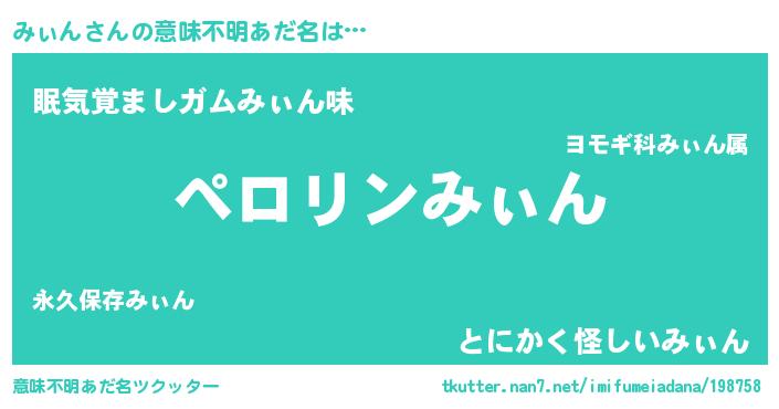 | ヒーロー風カッコイイあだ名 | 『スーパーミィン』『正義の使者みぃん』 |