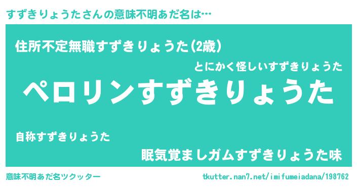 | 胡散臭い通販商品みたいなあだ名 | 『必ず成功する霊験あらたかなお札…その名も「すずきりょうた」』 |