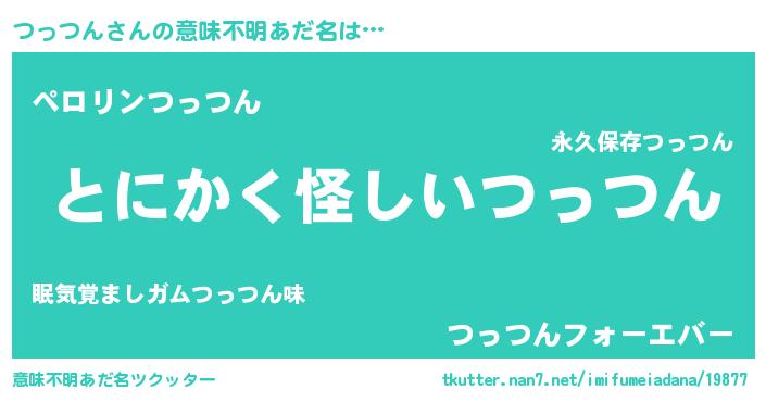 | 男性向けラノベタイトル風あだ名 | 『つっつんの嫁は女の子じゃないと思った?』 |
