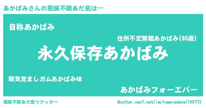 | 恥ずかしいあだ名 | 『あかちん』『アカバミデラックス』 |
