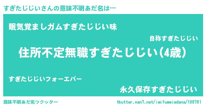 | ヒーロー風カッコイイあだ名 | 『仮面スギダー』『ネオスギタジジイ』 |