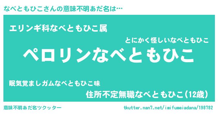 | 胡散臭い通販商品みたいなあだ名 | 『億万長者になれる水晶球…その名も「なべともひこ」』 |