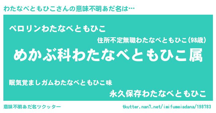 | 男性向けラノベタイトル風あだ名 | 『はたらくわたなべともひこさま!』 |