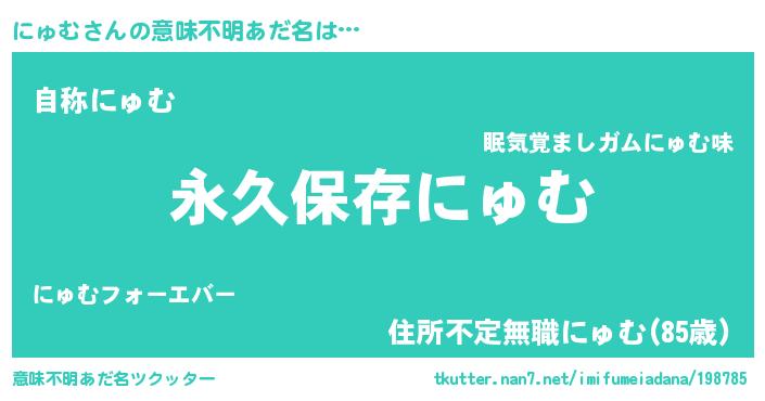 | ヘコむあだ名 | 『にゅむ(苦笑)』『レバニラ』 |