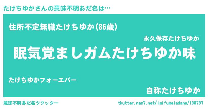 | ヘコむあだ名 | 『たけちゆか(苦笑)』『酢こんぶ』 |