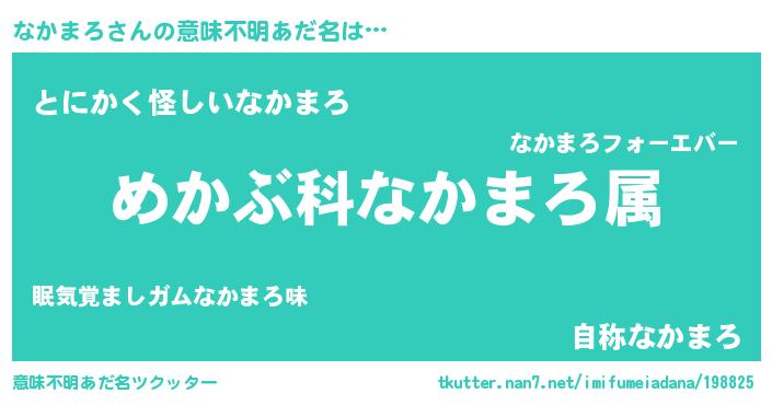 | 男性向けラノベタイトル風あだ名 | 『ナカマロスレイヤー』 |