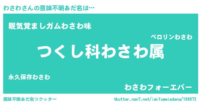 | ヒーロー風カッコイイあだ名 | 『慈愛の使者わさわ』『スーパーワサワ』 |