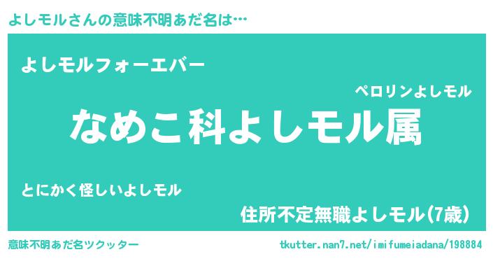 | 肩書あだ名 | 『よしモル少将』『よしモル国家主席』 |