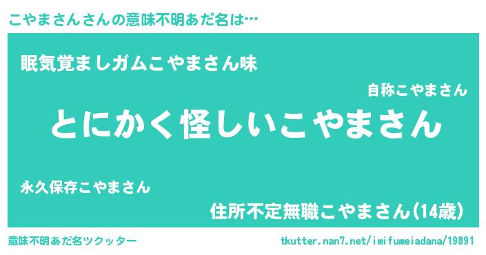 | 女子向けラノベタイトル風あだ名 | 『こやまさんは平凡を望む』 |
