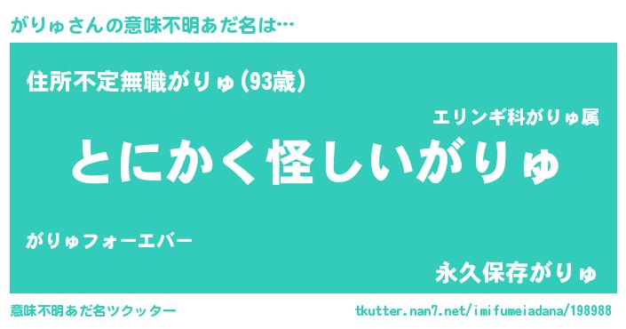 | ヘコむあだ名 | 『がりっぺ』『がりゅ(遠い目)』 |