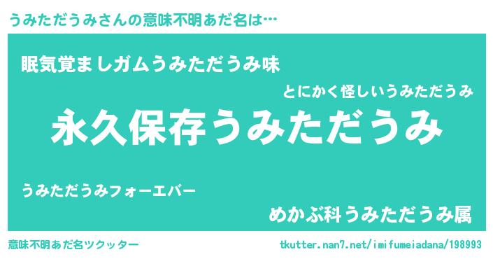 | 胡散臭い通販商品みたいなあだ名 | 『来世でも幸せになれる健康食品…その名も「うみただうみ」』 |