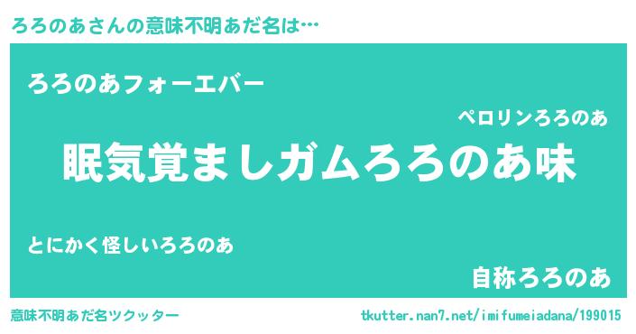 | 欧米人風あだ名 | 『ダニエルろろのあ』『マイケルろろのあ』 |