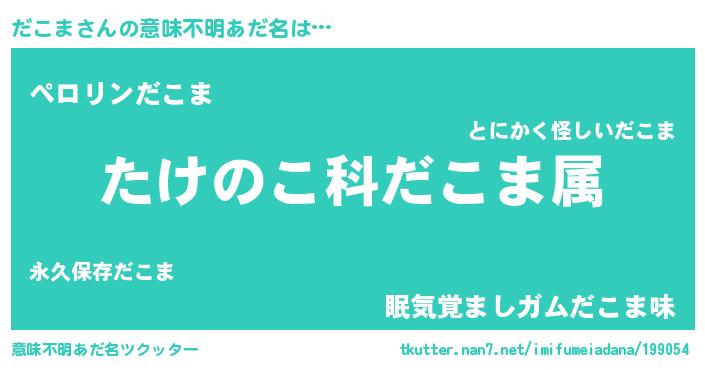 | 男性向けラノベタイトル風あだ名 | 『転生したらだこまだった件』 |