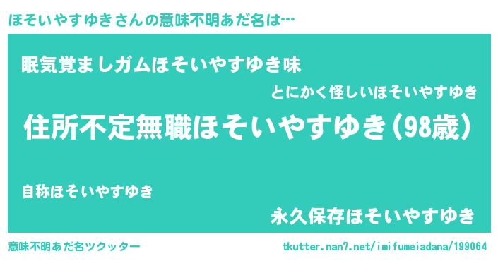 | 男性向けラノベタイトル風あだ名 | 『この素晴らしい世界にほそいやすゆきを!』 |