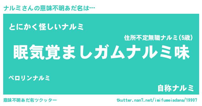 | ポケモン風あだ名 | 『ナックウザ』『ヒナルミ』 |