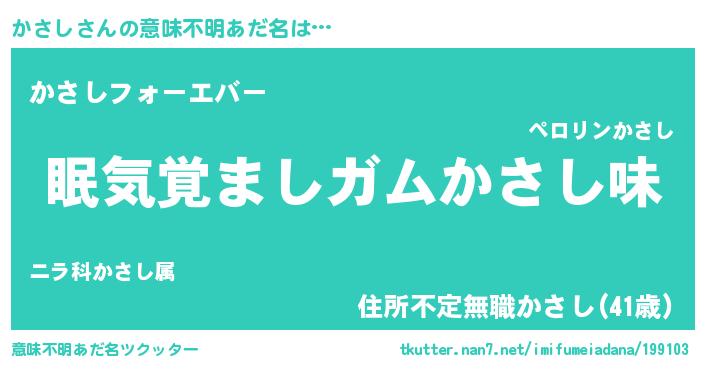 | 男性向けラノベタイトル風あだ名 | 『ノーゲーム・ノーカサシ』 |