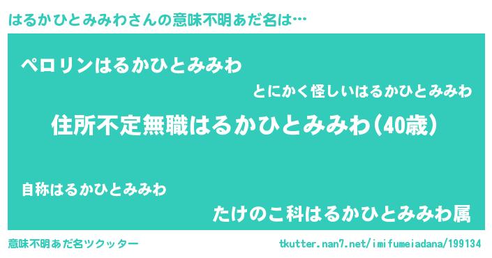 | 料理風あだ名 | 『はるかひとみみわのカルパッチョ風』 |