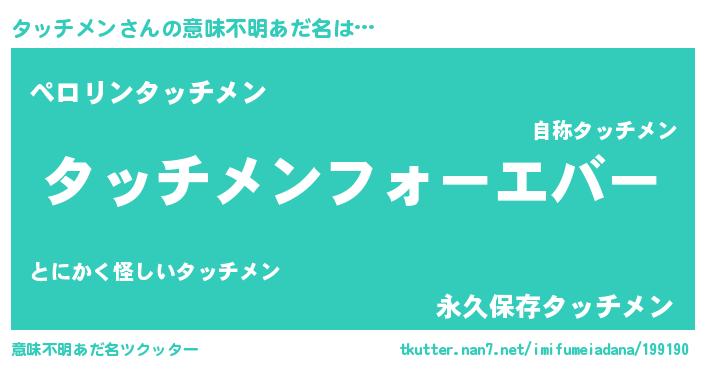 | 欧米人風あだ名 | 『タッチメンクリステル』 |
