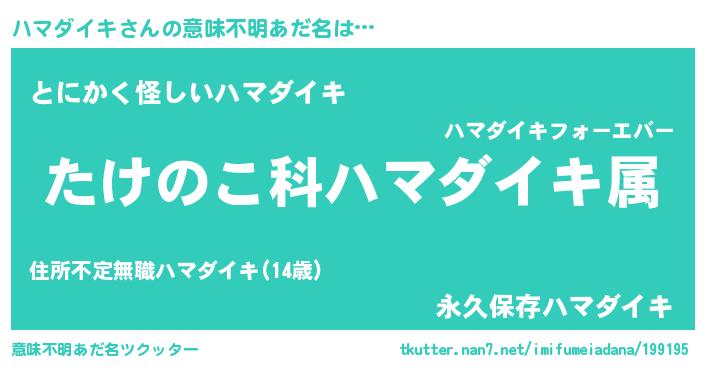 | 欧米人風あだ名 | 『トリンドルハマダイキ』 |