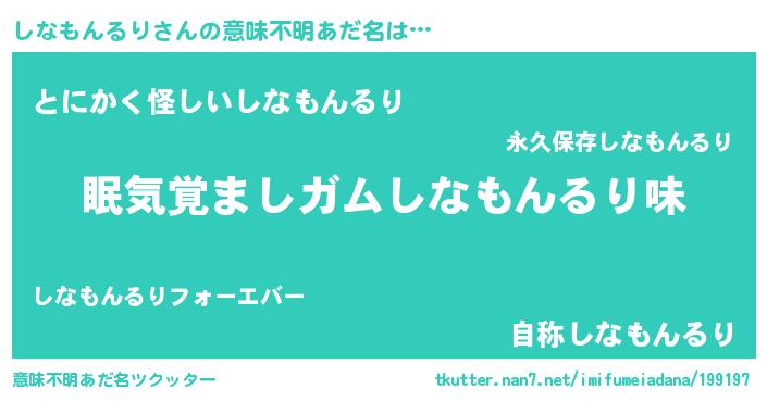 | ヘコむあだ名 | 『しなぷりん』『しなもんるり(苦笑)』 |