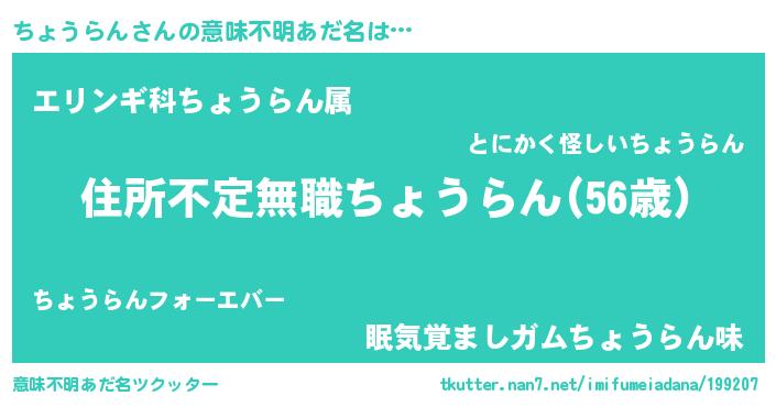 | 男性向けラノベタイトル風あだ名 | 『この素晴らしい世界にちょうらんを!』 |
