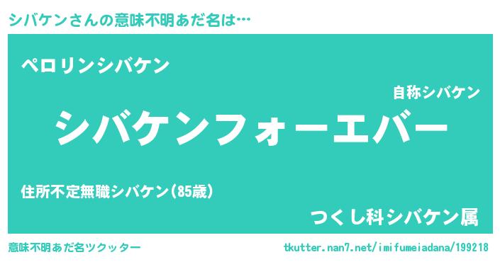 | 欧米人風あだ名 | 『シバケンクリステル』 |