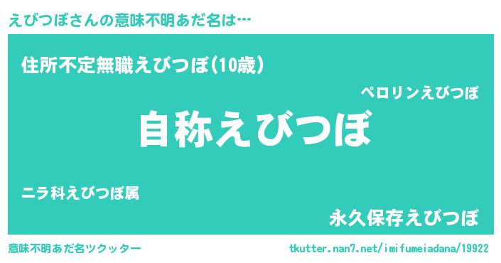 | ヘコむあだ名 | 『えびつぼ(震え声)』『えびふぇ~』 |
