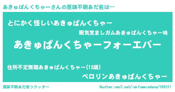 | ヒーロー風カッコイイあだ名 | 『ウルトラあきゅぱんくちゃーマン』 |