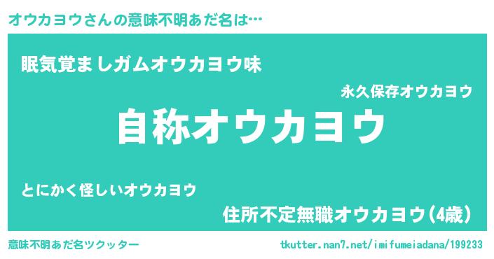 | ヘコむあだ名 | 『オウカヨウ(震え声)』『オウ太郎』 |