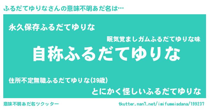 | ヘコむあだ名 | 『ふるだてゆりな(遠い目)』『ふるっぺ』 |