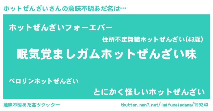 | 欧米人風あだ名 | 『ダニエルホットぜんざい』 |