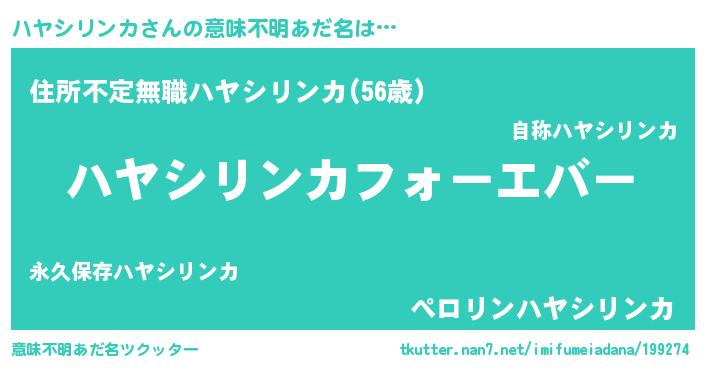 | 欧米人風あだ名 | 『ハヤシリンカクリステル』 |