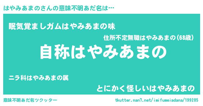 | 女子向けラノベタイトル風あだ名 | 『闇のはやみあまの』 |