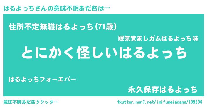 | 男性向けラノベタイトル風あだ名 | 『ダンジョンにはるよっちを求めるのは間違っているだろうか』 |