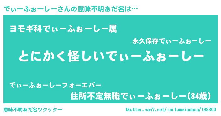 | 男性向けラノベタイトル風あだ名 | 『でぃーふぉーしーの嫁は女の子じゃないと思った?』 |