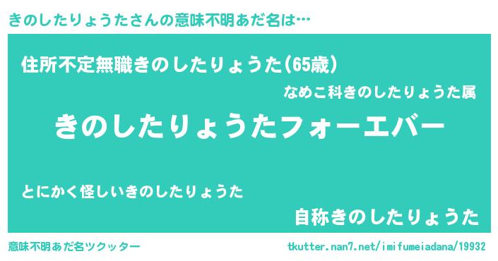 | ファンタジー風あだ名 | 『エターナルキノシタリョウター』 |