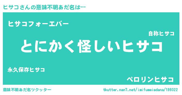 | 欧米人風あだ名 | 『ヒサコ・ステッグマイヤー』 |